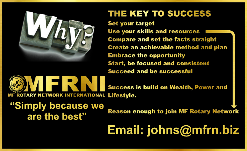 MF Rotary Network International can also be seen as an International Association of Business Professionals. It is indeed a superb Communications Platform for the Entrepreneur offering Extraordinary Brand Exposure.